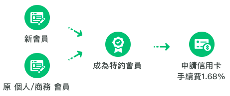 優惠二:金流手續費 ⭐【優惠內容】 符合特約會員審核,即享 90 天 信用卡手續費 1.68%(未稅)方案!